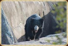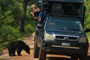 The Sri Lankan sloth bear (Melursus ursinus inornatus) is a subspecies of the sloth bear found mainly in lowland dry forests in the island of Sri Lanka. The Sri Lankan sloth bear is omnivorous. It feeds on nuts, berries, and roots, as well as carrion and meat. One of its main staples is insects, which it removes from rotting stumps and trees with its long, hairless snout. They will turn over boulders and pull away old logs to get at the insects underneath. They have developed over time an adapted lower lip that the bears use for sucking up insects, making a loud hoovering sound as they do so. It rarely kills animals. Yala National Park is a famous place to sight these mammals in Sri Lanka. This is Baloo the bear from the Jungle Book. They both have light coloured noses and long claws for digging. Sloth Bears live mainly in lowland forests but they have been spotted occasional walking around the rocky outcrops contained in the park. Spotting a Bear is all depend on the luck. there is no specific ways to track them down. But early startup will double your chances.